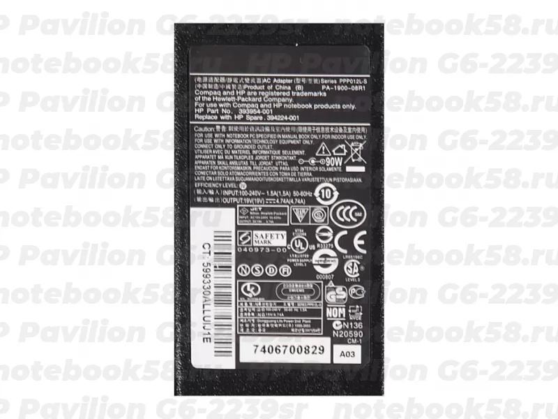 Блок питания для ноутбука HP Pavilion G6-2239sr 19V, 4.74A, 90W (7.4x5.0мм + pin) HC [NB-2194-01-1687]