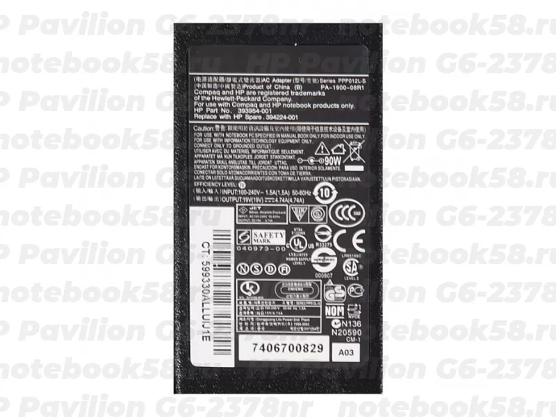 Блок питания для ноутбука HP Pavilion G6-2378nr 19V, 4.74A, 90W (7.4x5.0мм + pin) HC [NB-2194-01-1898]